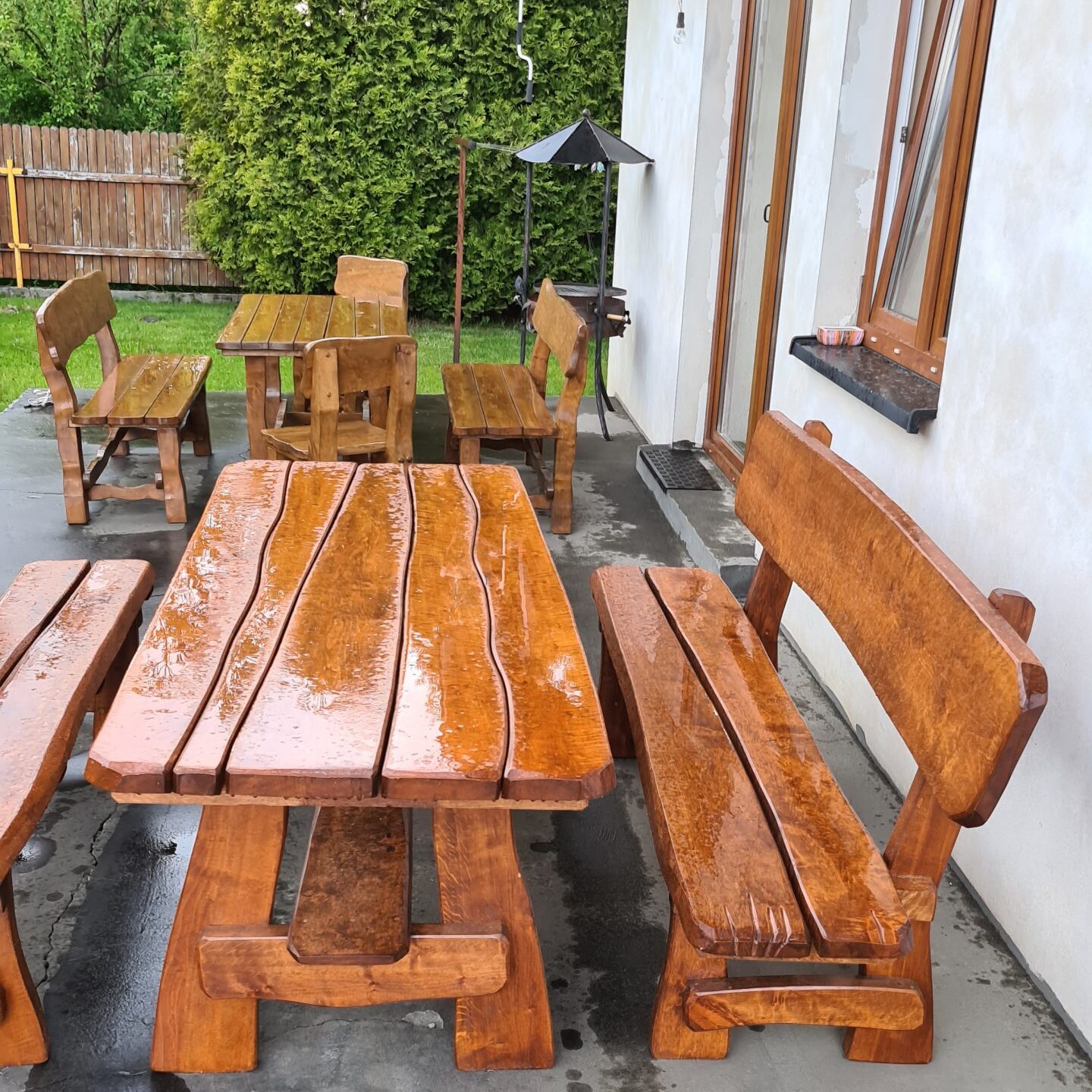 Meble ogrodowe tworzą wygodną i funkcjonalną przestrzeń do wspólnego spędzania czasu na świeżym powietrzu. W ofercie znajdują się zarówno solidne stoły i ławy, jak i domki dla dzieci ze zjeżdżalniami — bo gdy dorośli mają swoje miejsca do siedzenia, najmłodsi potrzebują własnej przestrzeni do zabawy. Od ponad 20 lat projektujemy meble, które łączą trwałość, estetykę i radość korzystania z ogrodu.